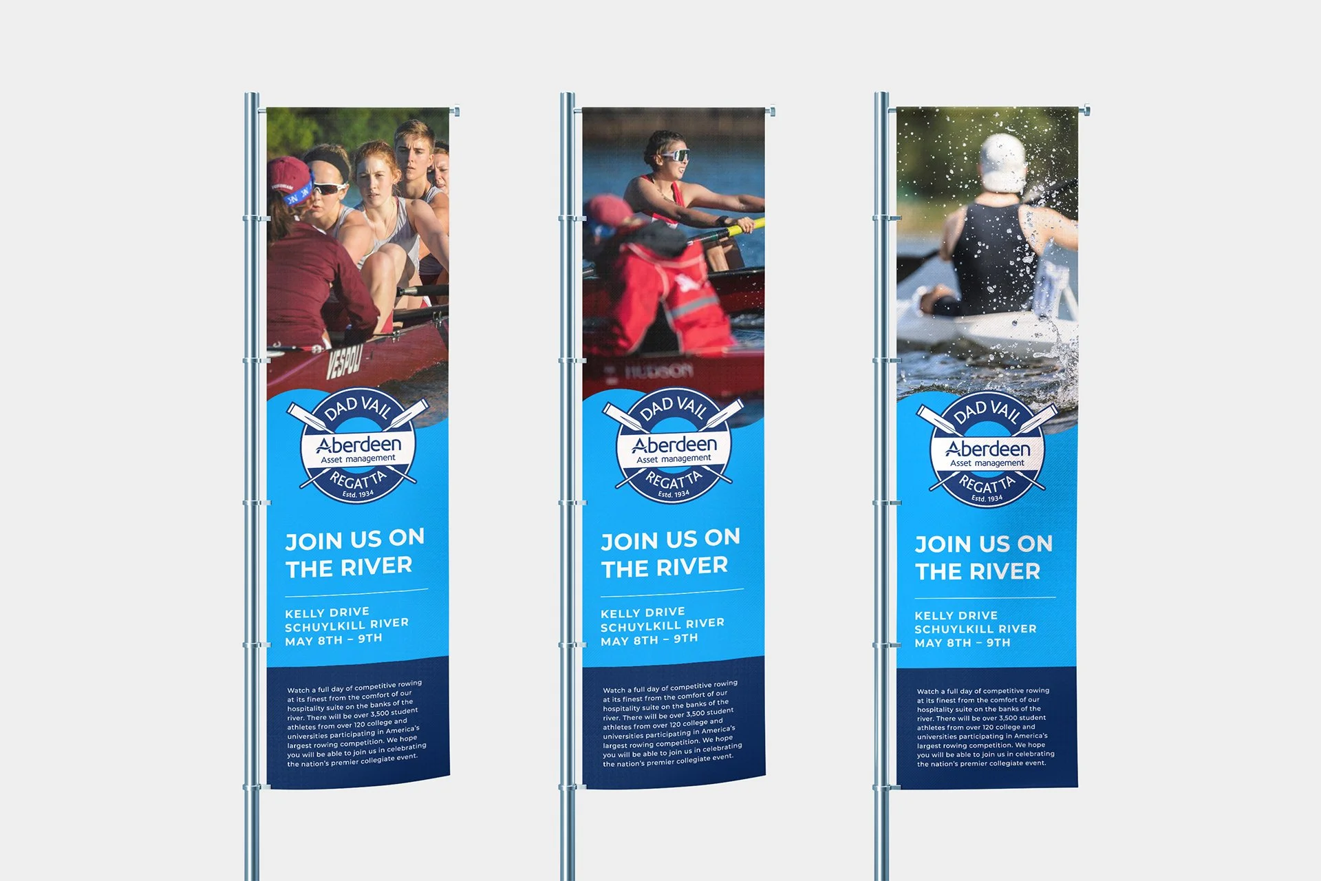 With thousands of athletes, coaches, alumni, and spectators in attendance, the regatta offered a rare opportunity to engage a concentrated community defined by discipline, ambition, and teamwork. The challenge was to stand out in a visually crowded environment while positioning Aberdeen as a credible, distinctive partner across both physical and digital touch points.
