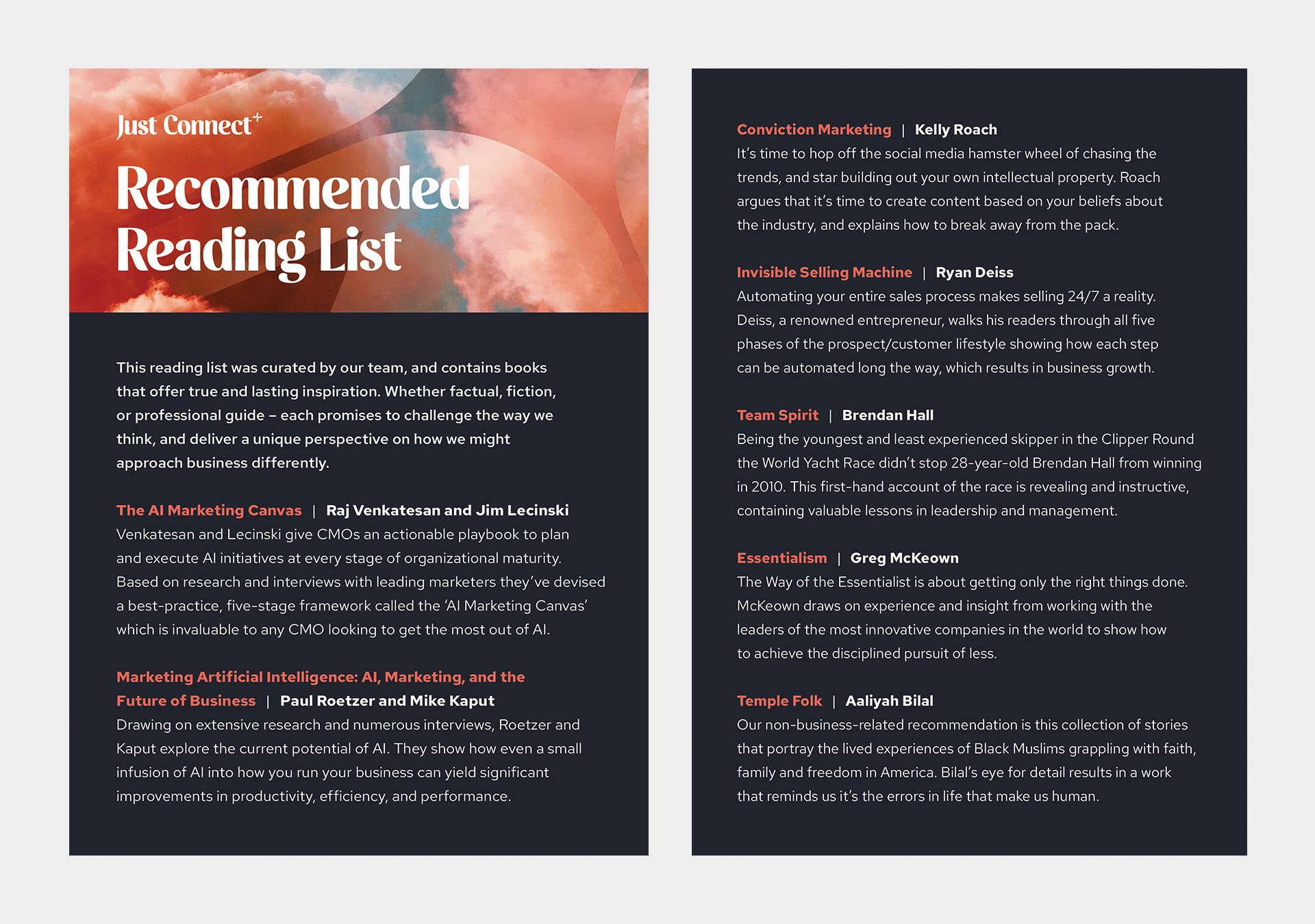 Just Connect was created to address a gap in an increasingly transactional marketing landscape: senior leaders lacked spaces for candid conversation and meaningful peer exchange. Recognizing an opportunity to evolve from agency partner to community catalyst, Just Global developed the platform to foster dialogue, insight-sharing, and lasting relationships among its most valued clients—building trust and shared value through thoughtfully designed experiences.